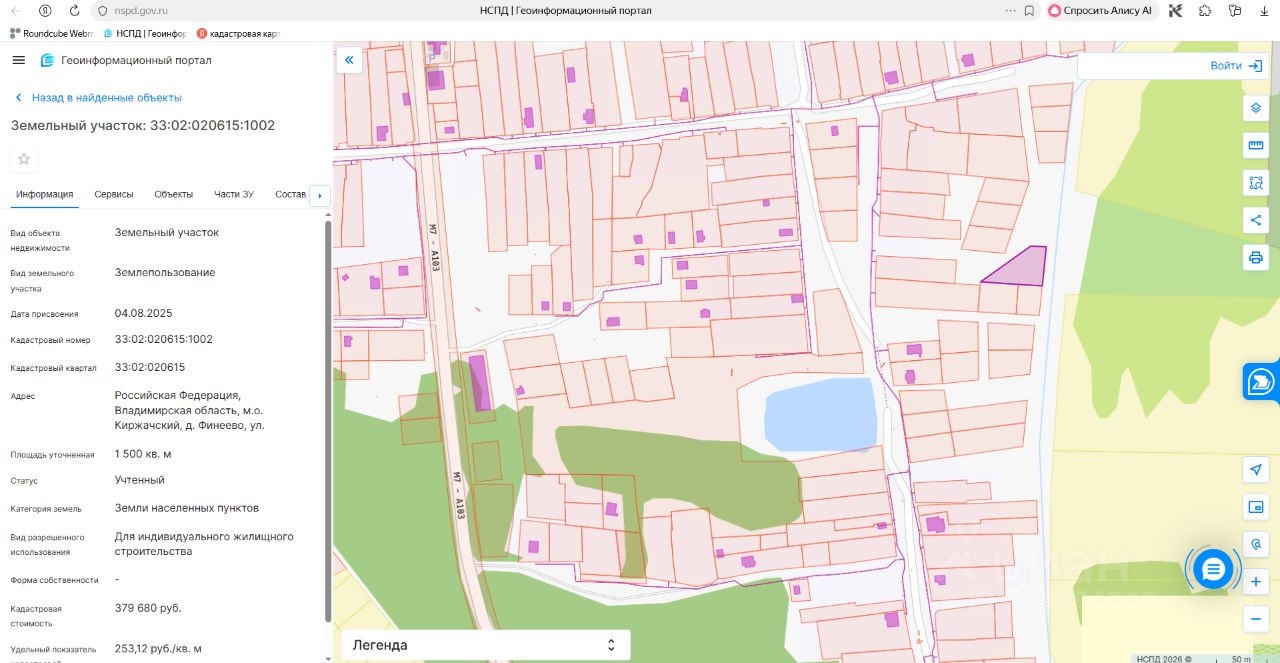 Земельный участок с кадастровым номером 33:02:020615:1002, площадью 1500 кв. м, из категории земель населенных пунктов, с разрешенным использованием: для индивидуального жилищного строительства, расположенный по адресу: Российская Федерация, Владимирская область, муниципальное образование Першинское, д.Финеево, ул.Центральная, земельный участок 78