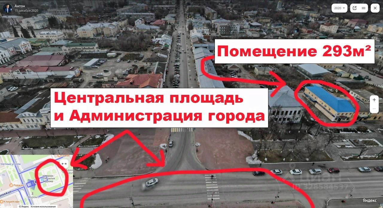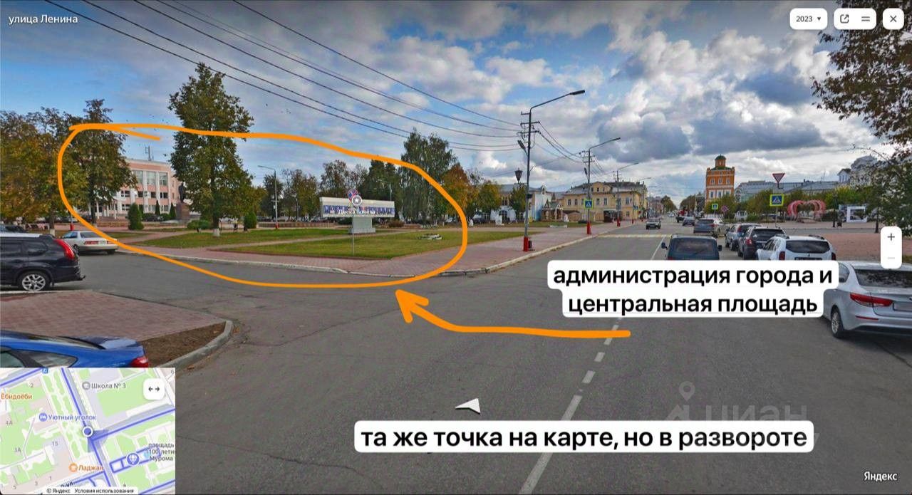 Ул. Ленина, 9 — напротив городской администрации, нулевой километр города. Лучшее место в Муроме для бизнеса с трафиком: рядом памятник Калачу, набережная, памятник Петра и Февронии, церкви, туристические маршруты.