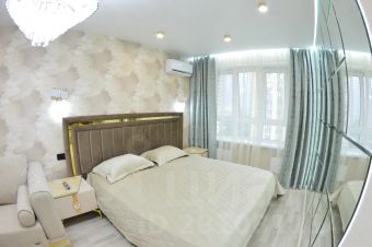 Квартира обладает двумя спальнями, центральным интерьером этих комнат являются кровати с ортопедическими матрасами, чтобы сделать спальни эффектными и небанальными, также мы добавили удобные раскладные диваны с раскладным механизмом "дельфин" и журнальный столик для удобного просмотра кинофильма и чаепития.