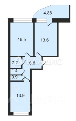 Квартира расположена на 5 этаже девятиэтажного кирпичного дома 2010 года постройки. Общая площадь составляет 58 кв. м, из которых 30,4 кв. м — жилая площадь, 13,6 кв. м — кухня. Две отдельные комнаты площадью 16,5 кв. м и 13,9 кв. м предлагают достаточно пространства для комфортного проживания.