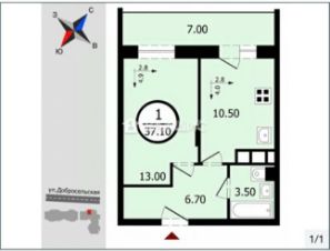 Квартира площадью 37,1 кв. м с евроремонтом, полностью готова к заселению.