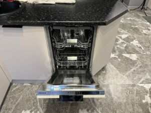 встроенная техника: холодильник, посудомоечная машина, СВЧ печь,стиральная машина, кондиционер, огромный телевизор;