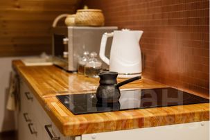 Кухня с необходимой посудой и техникой. Кофе/чай, масло, специи,
