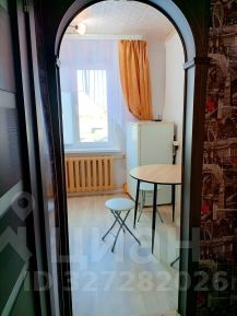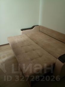 Комната поделена на зоны большим четырёхстворчатым шкафом.