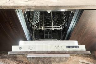 — Современная кухня, оборудованная встроенной техникой (холодильник с морозильной камерой, варочная панель, посудомоечная машина, СВЧ печь, электрочайник)