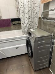 В КВАРТИРЕ: Квартира полностью оборудована: холодильник, телевизор, микроволновка, кондиционер, стиральная машина, мебель, три спальных места! Подключены: Домофон, интернет, роутер Wi-Fi, телевидение Итнет.
