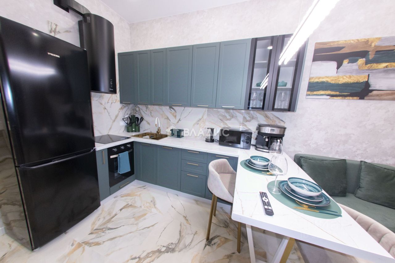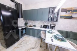 Кухня (14 м²): Полностью оснащена: холодильник, плита, микроволновая печь, посудомоечная машина и кофемашина.
