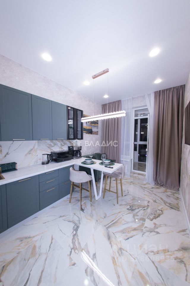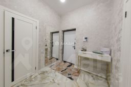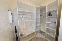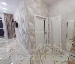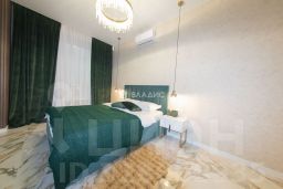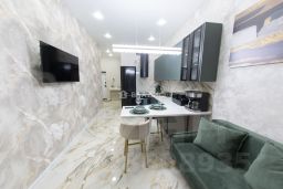Комната: Просторная, с дизайнерским ремонтом, светлыми стенами и современной мебелью. Установлены удобная двуспальная кровать, телевизор и шкафы для хранения вещей.