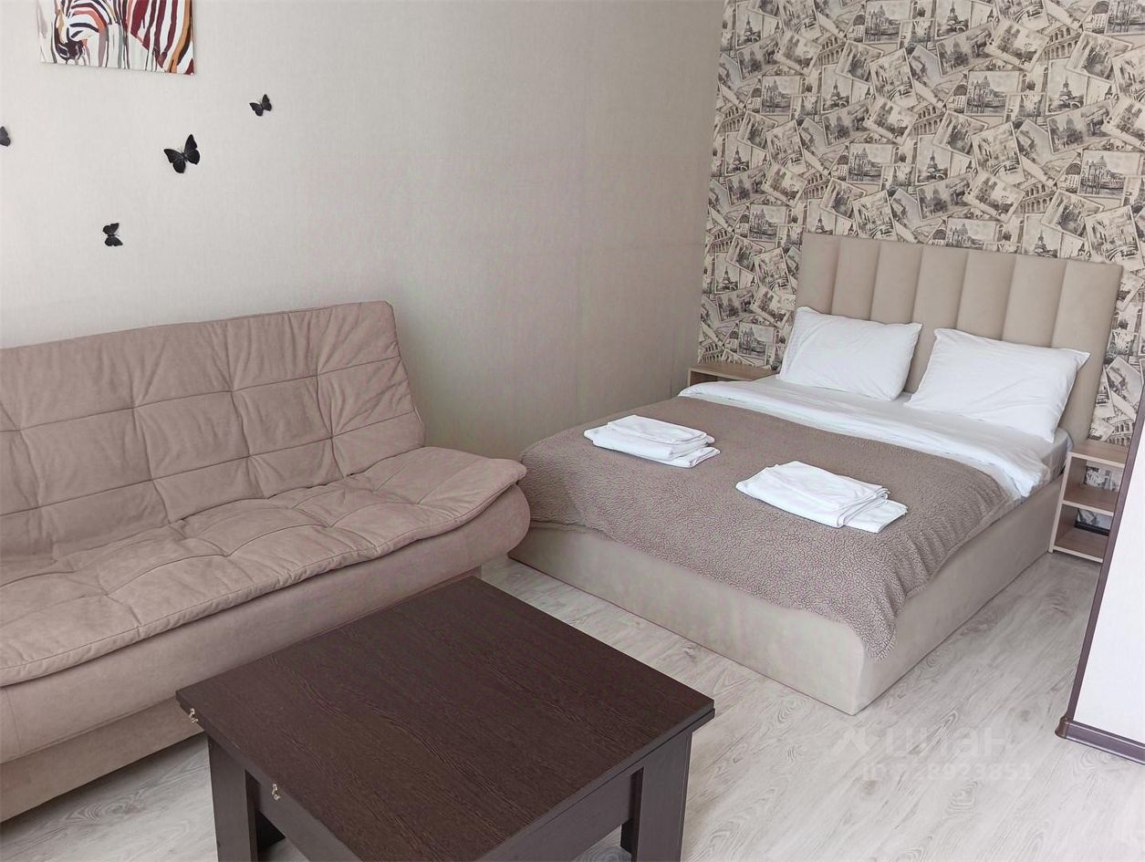Уютные апартаменты состоят из просторной комнаты с двуспальной кроватью, диваном, журнальным столиком, комплектом мебели для хранения и кухни с плитой для приготовления пищи, электрочайником, кухонными шкафами с набором посуды и обеденной зоны. Собственная ванная комната, стиральная машина.