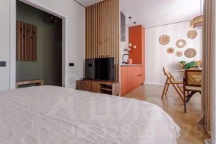 Просторная студия 28 м²: Идеально для пары или компании до 2 гостей.