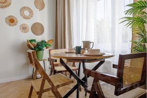 Дизайн интерьера: Ощутите гармонию с природой, не выходя из дома. Интерьер в балийском стиле с натуральным деревом, плетеной мебелью, текстилем с этническими узорами и теплой палитрой создает неповторимую атмосферу уюта и релакса.