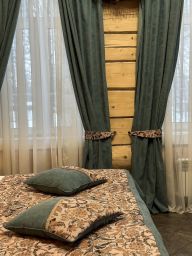 Гостям предлагают для размещения 3 корпуса и 2 особняка с номерами категорий Стандарт, Студия, Бизнес, Люкс и Семейный. Во всех есть кондиционер, телевизор, холодильник, удобное рабочее место и собственная ванная комната с туалетно-косметическими принадлежностями. Все номера стилизованные, оформлены в русском стиле, имеют уникальный интерьер.