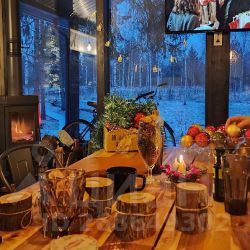 Сауна с панорамой на лес + уютный камин в гостиной