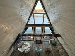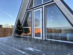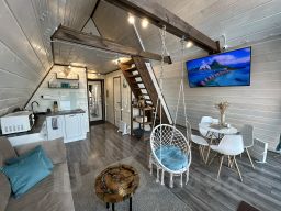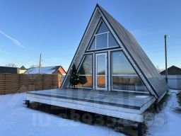A-frame дом, в котором созданы все привычные городскому жителю условия: