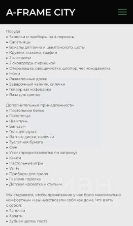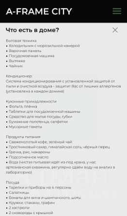 - Уютные коттеджи и дома в стиле Афрейм, оборудованные всем необходимым для круглогодичного проживания.