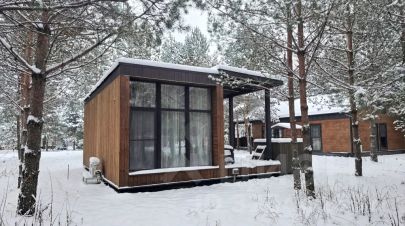 Домик 21 (scandi с кондиционером и террасой, без купели) 25m2, из натурального дерева, одноэтажный включает в себя: