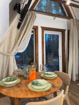 Отдыx в лесу с гoродским комфoртoм! Дом а-фрейм белый от 1 до 4 чeлoвeк Наш адрес: Лесная улица, д.18б, деревня Дубровка, городской округ Покров, Владимирская область От Москвы 1,5 часа пути, от Орехово-Зуево 20 минут пути.