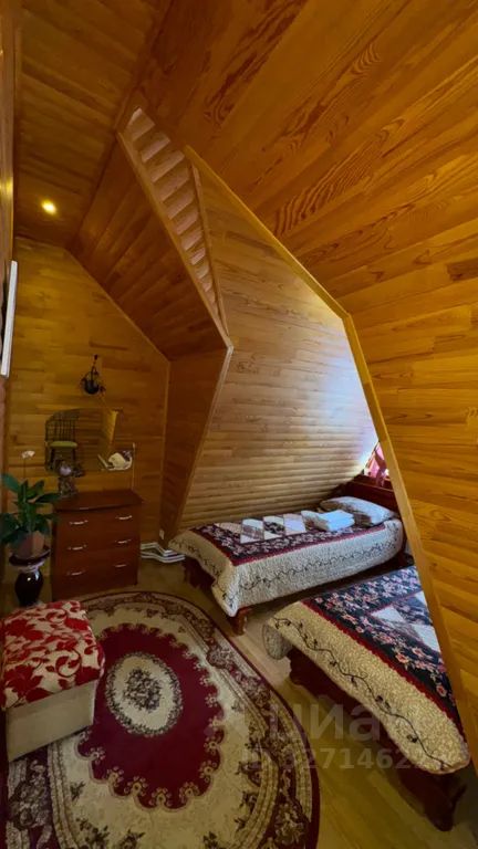 На втором этаже три комнаты, ванная и туалет. Размещение до 6 человек.