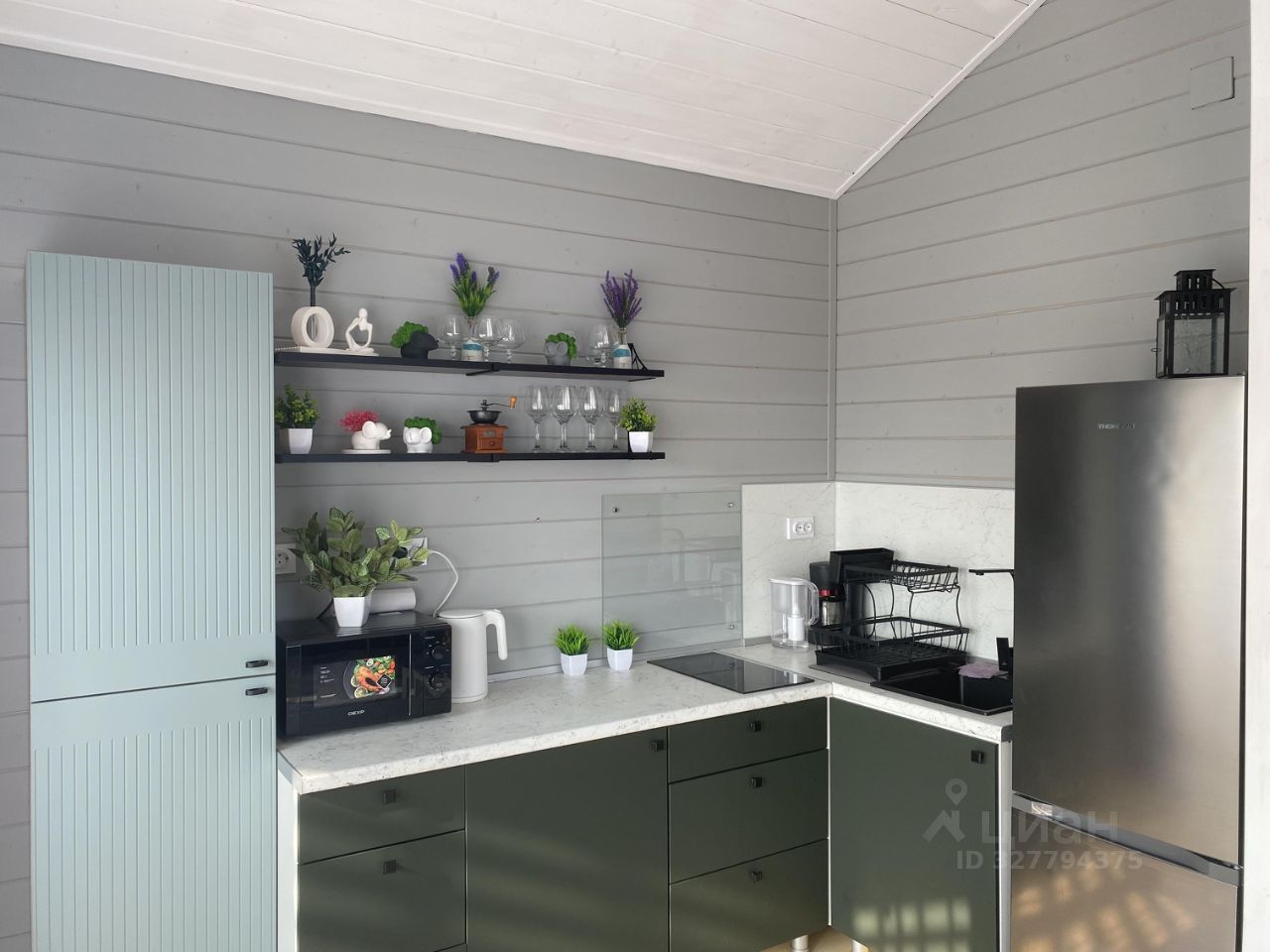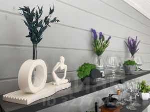 Дом — это просторные светлые комнаты, наполненные теплом дерева и мягким светом. В двух спальнях вас встретят уютные двуспальные кровати с качественным бельём, а в гостиной — глубокий диван, где с комфортом разместятся ещё двое гостей. Интерьер продуман до мелочей: изумрудные акценты мебели, стильный текстиль, деревянные поверхности и тёплое освещение, которое можно менять под настроение — от яркого утра до мягкого вечернего света.
