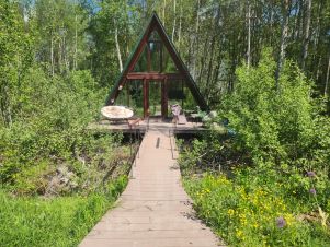 Предлагаем Вам отдохнуть в доме стиля афрейм (A Frame), а также в бане на берегу чистого водоёма. Также неподалёку находятся два озера Кукушка и Аксеновское и реки Клязьма и Пекша с грибными лесами.
