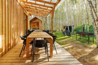 Русская парная, чан на дровах и терраса с зоной BBQ позволяют завершить день расслаблением, насладиться ароматом леса и тихой гармонией природы, а вечером провести время за беседой или отдыхом у мягкого света огня.