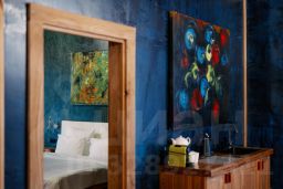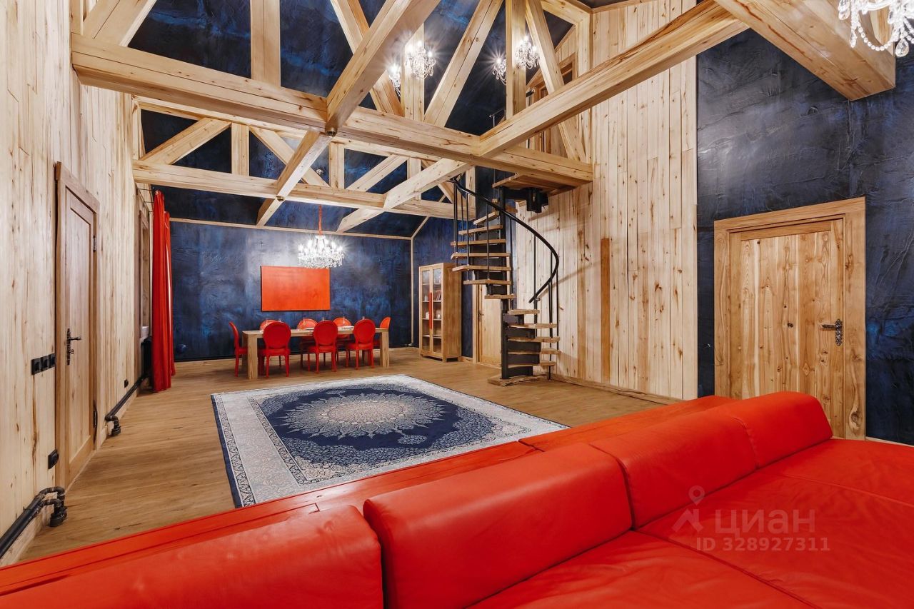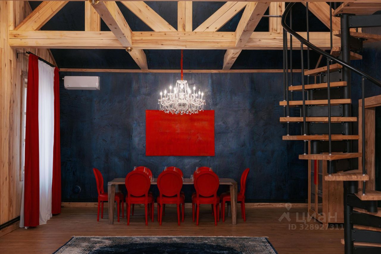 Интерьер коттеджа вдохновлён творчеством художника Филиппа Малявина, известного своей смелой колористикой и экспрессивной живописью. Ярко-красные акценты в декоре гармонично сочетаются с тёплыми деревянными поверхностями, создавая баланс между динамикой и спокойствием. Пространство наполнено светом и текстурой, что усиливает эффект присутствия и эмоциональной вовлечённости.