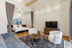 • Просторная ванная комната с душем, дизайнерской сантехникой и феном Dyson;
