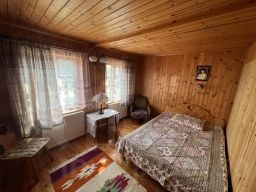 Коттедж рассчитан на проживание 4-5 человек. В комнате две комнаты и веранда. Коттедж оборудован необходимой мебелью, кухней, холодильником, микроволновой печью, чайником, ванной комнатой.