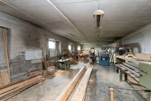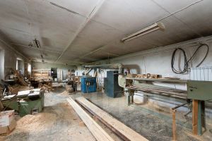 На территории находится два здания 360 кв.м. (высота потолков 5 м) и 403 кв.м. (высота потолков 3м) Имеется фундамент еще под один цех. размером 12x20 метров. В цехе установлено оборудование для производства мебели из массива дерева: фуганок промышленный (ширина ножей 300мм), станок рейсмус трехскоростной (ширина ножей 400мм), две промышленные циркулярные пилы, два фрезера, ленточный шлифовальный станок (длина ленты 6300мм), два токарных станка, фрейзер многоскоростной с кареткой, колибровально шлифовальный станок (ширина 400мм), кромко шлифовальный станок - пылесборник пылесос.