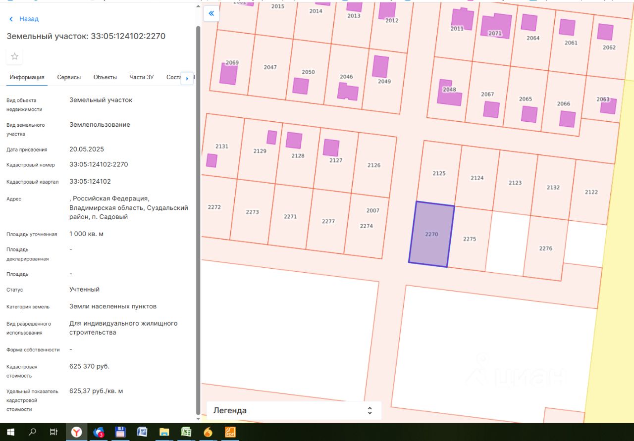 Продажа земельного участка из земель населенных пунктов общей площадью 1000 кв.м, с кадастровым номером 33:05:124102:2270, местоположение: Российская Федерация, Владимирская область, р-н Суздальский, МО Павловское (сельское поселение), п. Садовый , с разрешенным использованием: для индивидуального жилищного строительства.