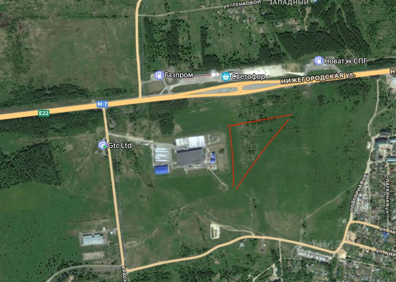 Земельные участки находятся практически на первой линии магистрали М7, заезд возможен через соседнее предприятие, либо взять в аренду участок городской территории, для организации заезда.
