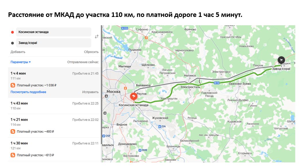 Платная трасса М-12 находится в 5 км от рассматриваемого участка.