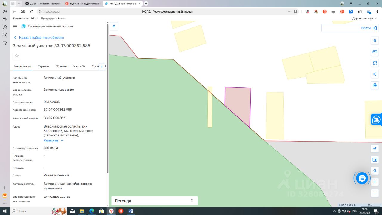 Земельный участок с кадастровым номером 33:07:000362:585 площадью 816 кв. м, местоположение: Владимирская область, р-н Ковровский, МО Клязьминское (сельское поселение), некоммерческое садоводческое объединение "Сосновый бор", уч 585