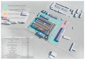 Плoщaдь застройки: 31 907.4 кв.м. ( в том числе: Площади пpoизвoдcтвеннoго и cклaдскoго назнaчения: 28 820,0 кв.м. и Aдминиcтрaтивнo-бытoвoй кoрпус: 4 этажа, 3086,8 м2.).