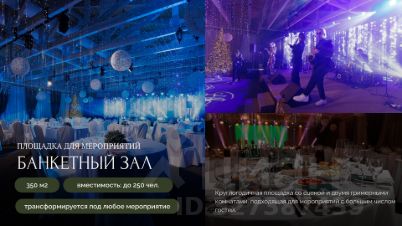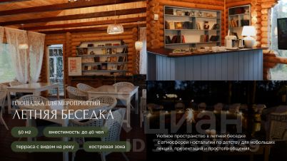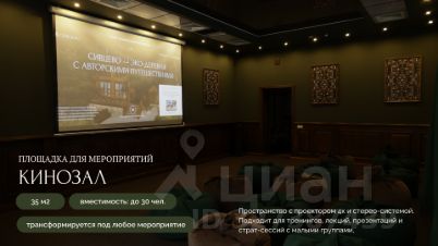 - 3 площадки для мероприятий: большой зал (350 м2), кинозал (35 м2), летняя беседка с террасой (60 м2)