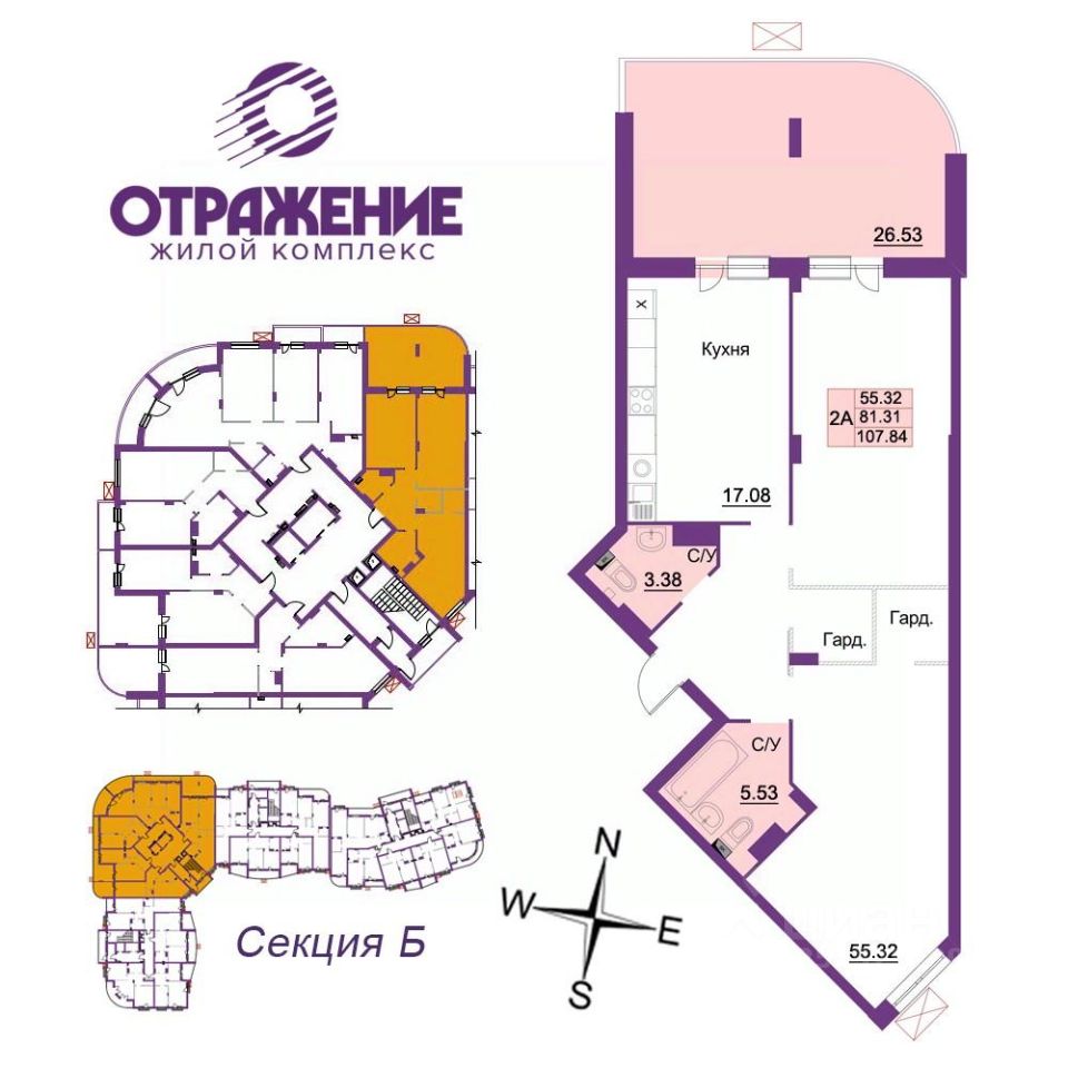Квартира 111, Секция 2, Корпус 3 ( ЗУ-3) в новостройке напрямую от ЗАСТРОЙЩИКА.