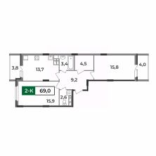Представляем вам вместительную двухкомнатную квартиру 69 кв.м в жилом комплексе "Чайковский". Это настоящий жемчужина среди наших предложений.