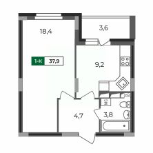 Классическая однушка с совмещенным санузлом, функциональной прихожей, небольшой кухней с выходом на лоджию и большой жилой комнатой, в которой при желании можно организовать гардеробную (предусмотрена ниша).