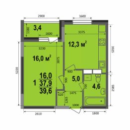 Однокомнатная квартира (39,6 кв.м) в 4 подъезде ЖК Смоленская 3Б. Окна квартиры выходят на восток в сторону двора. В квартире большая жилая комната 16 кв.м с выходом на лоджию, совмещенный санузел, функциональная прихожая и кухня площадью более 12 кв.м.