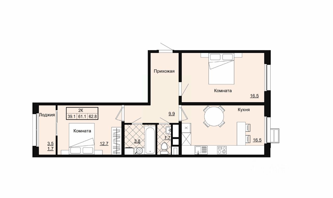 62,8 м²