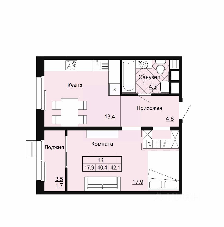 42,1 м²