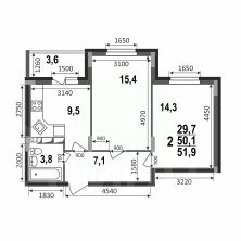 Плюсы: квадратная кухня почти 9,5 кв.м с выходом на лоджию, просторные раздельные жилые комнаты 14/15 кв.м, совмещенный санузел, функциональная прихожая с местом под шкаф-купе
