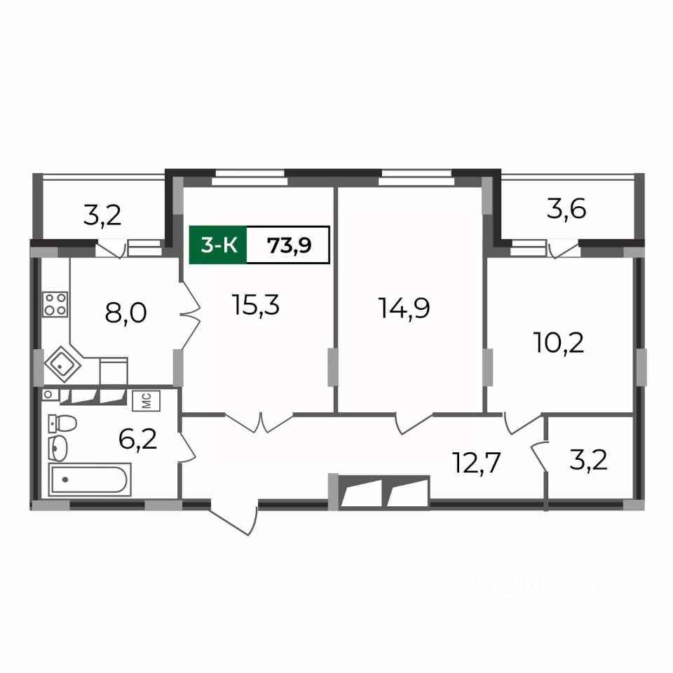 Общая площадь73,9 м²