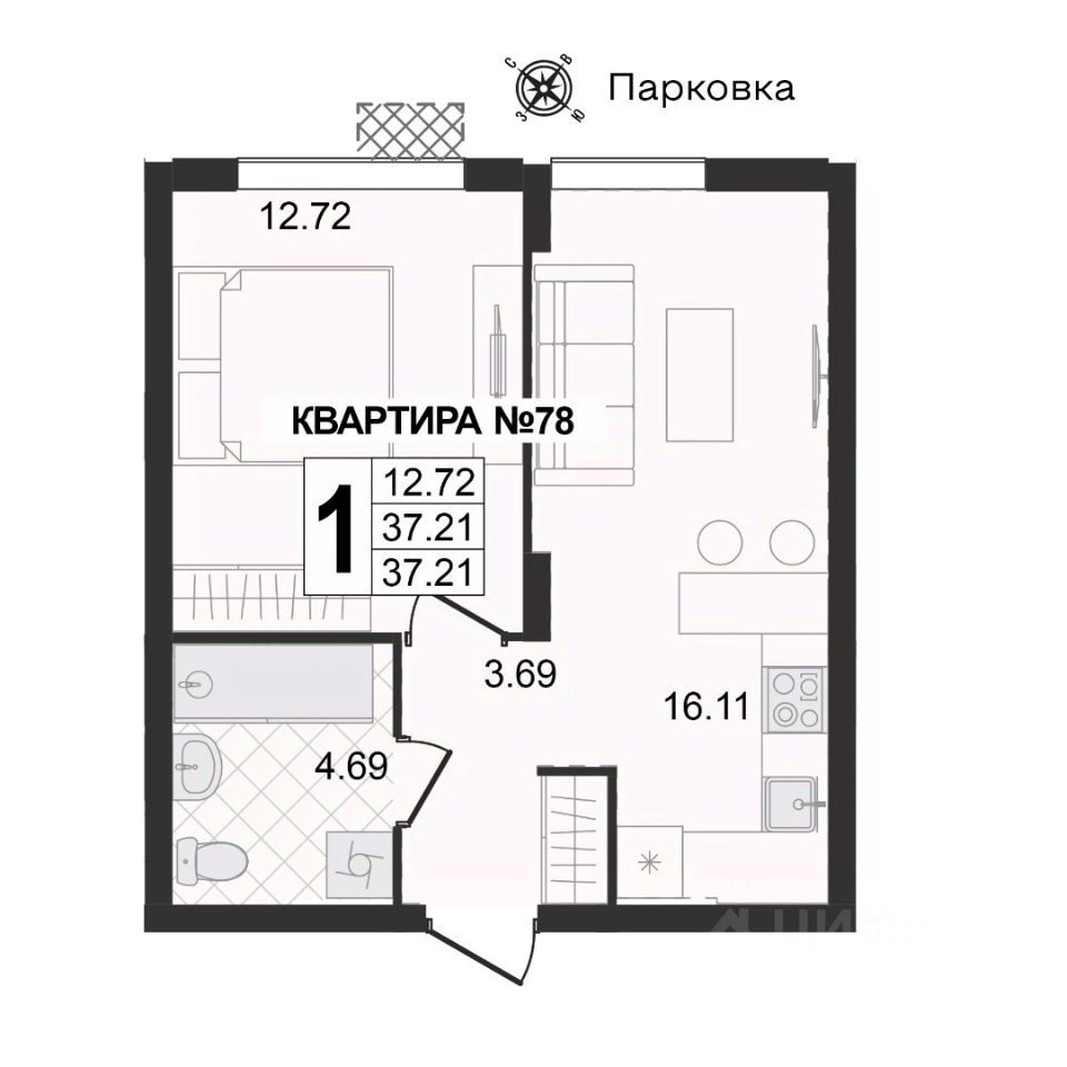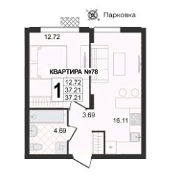 Продаётся 1-комнатная квартира в строящемся доме (Корпус 1 квартал 9), срок сдачи: III-кв. 2029, общей площадью 37.21 кв.м., на 2 этаже.