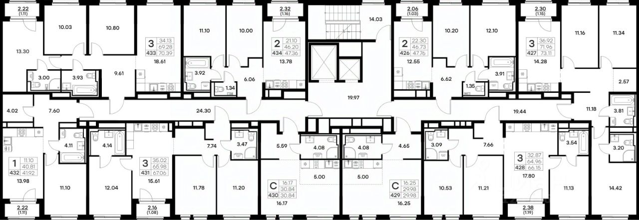 Продается 3-комн. квартира на 11-м этаже в строящемся проекте комфорт-класса GloraX Октябрьский. Общая площадь лота составляет 73,11 кв. м, из которых 36,92 кв. м отведено под жилую и 14,28 кв. м под кухонную зону. Номер квартиры - 427.