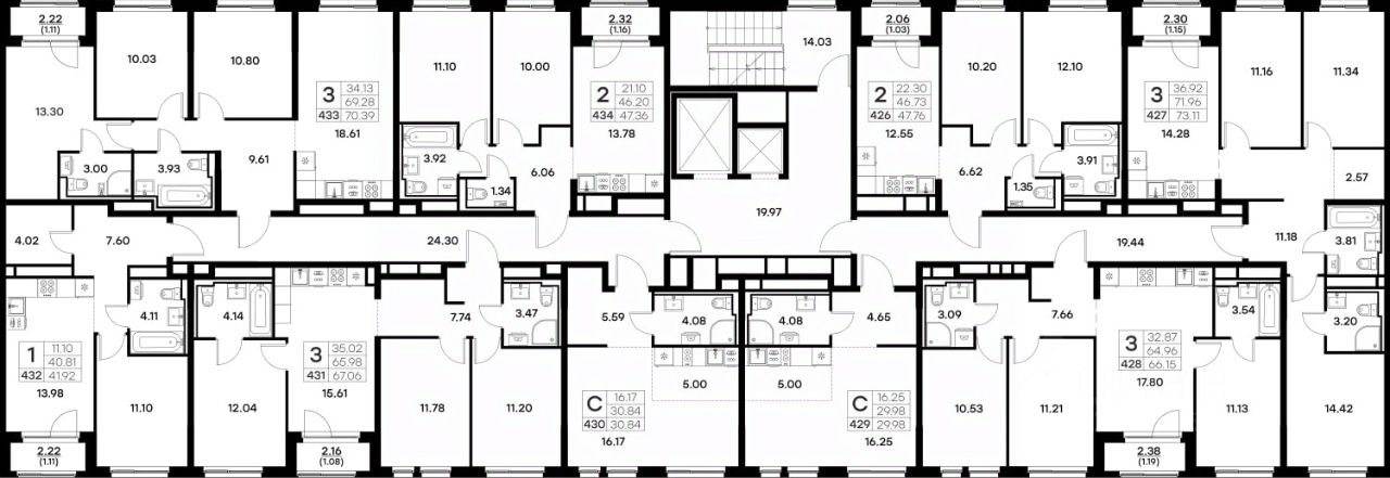 Продается 3-комн. квартира на 11-м этаже в строящемся проекте комфорт-класса GloraX Октябрьский. Общая площадь лота составляет 70,39 кв. м, из которых 34,13 кв. м отведено под жилую и 18,61 кв. м под кухонную зону. Номер квартиры - 433.