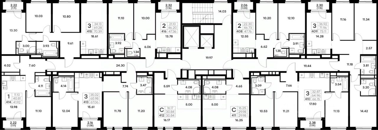Продается 3-комн. квартира на 9-м этаже в строящемся проекте комфорт-класса GloraX Октябрьский. Общая площадь лота составляет 70,39 кв. м, из которых 34,13 кв. м отведено под жилую и 18,61 кв. м под кухонную зону. Номер квартиры - 415.