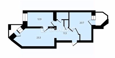 кухня - 12,9кв. м, Просторные светлые комнаты 23,3кв.м. и 20,7кв.м.