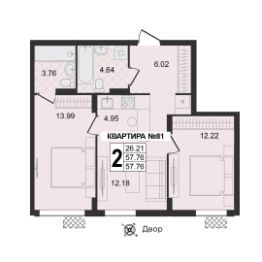 Продаётся 2-комнатная квартира в строящемся доме (Корпус 1 квартал 9), срок сдачи: III-кв. 2029, общей площадью 57.76 кв.м., на 2 этаже.
