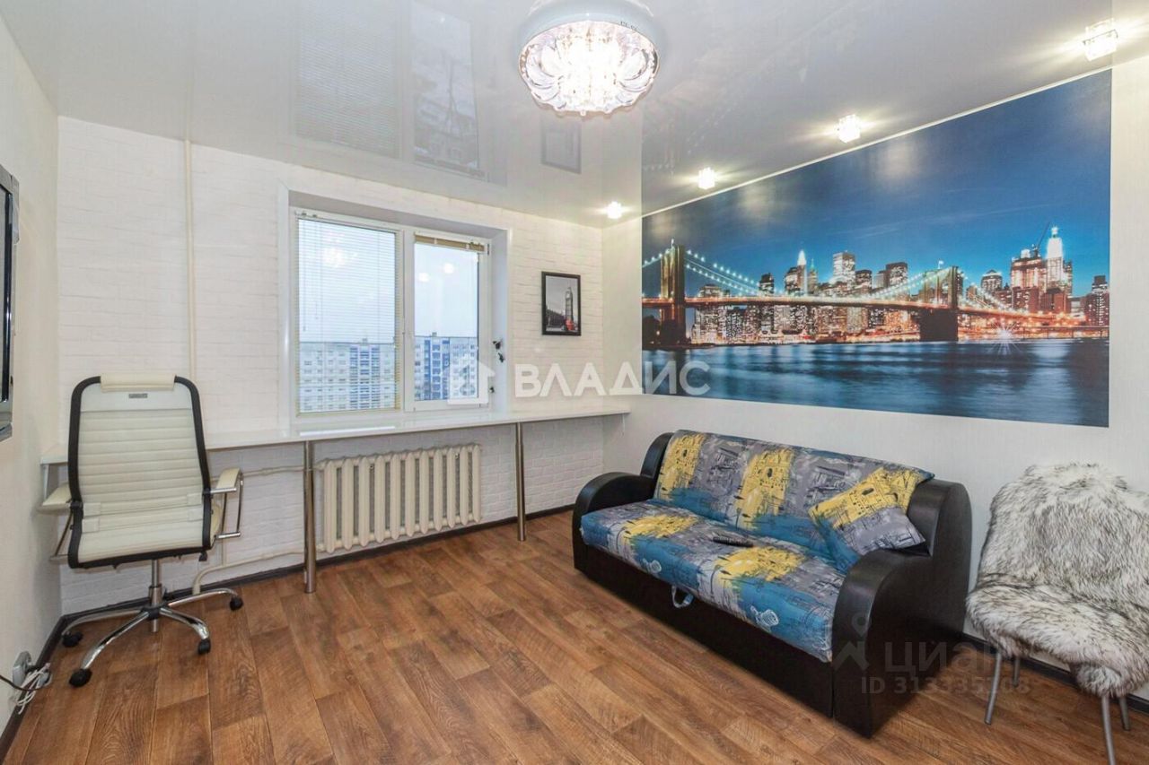 Квартира полностью меблирована, все остается. Современный кухонный гарнитур, холодильник, кухонный стол, стиральная машина, три вместительные шкафа-купе, два раздвижных дивана, навесные полки. Заезжай и живи!